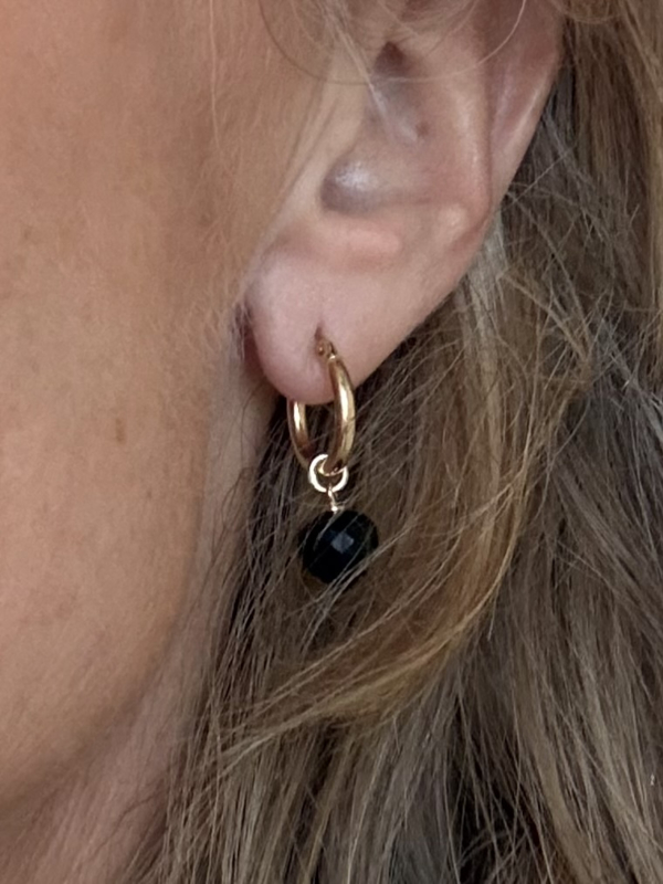 14krt gouden Creolen (14mm) met een geslepen Onyx. De oorbellen zijn ca. 2,5cm lang.