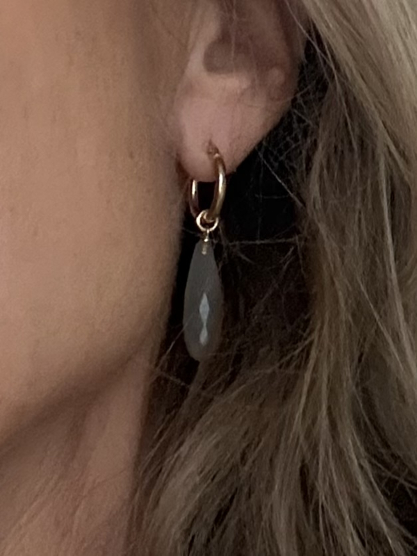 Gouden Creolen (14mm) met langwerpige Maanstenen (14krt).