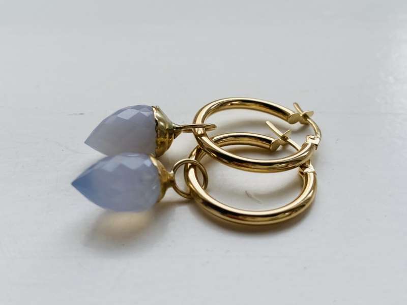 De Chalcedone hangertjs zijn ook los te koop, prijs…€ 560,00