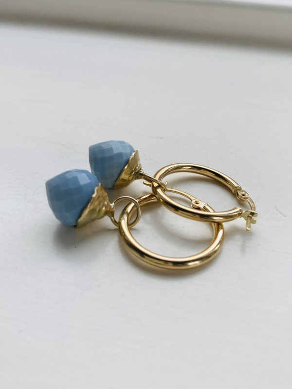 Gouden Creolen met Opalen (14krt)Gouden Creolen (14mm) met lichtblauwe Opalen (14krt). De Opalen zijn iets lichter dan op de foto.
